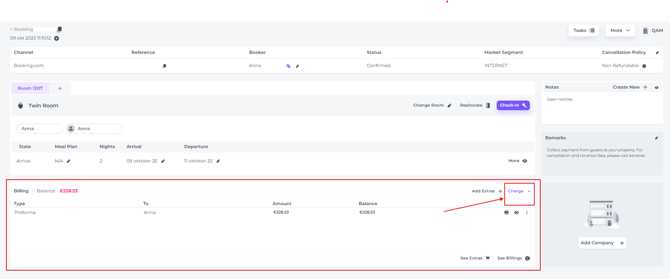 When payments need to be executed via the reservation one will do so in the Billing section via the Charge Button: