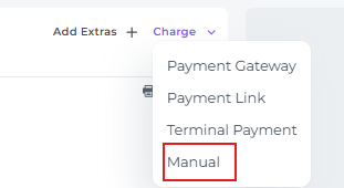 In this case you will select the Manual option that is presented in the Charge button in the reservation: