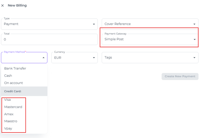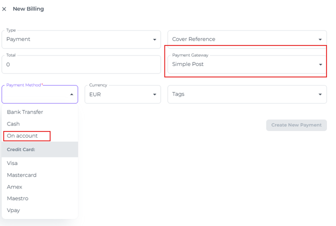 - Simple Post involves manually posting a payment, usually only for cash payments, Bank Transfer payments or 'On Account' payments.