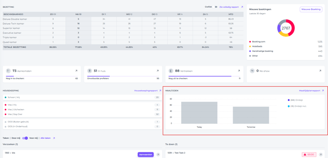 Toont alle maaltijdplannen die voor vandaag en morgen gepland staan, zodat het F&B-team duidelijk inzicht heeft in de personeels- en voorraadbehoeften voor de komende dag.