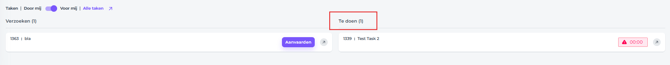 - Taakfilter - Gebruik de filterknoppen (Door mij, Voor mij) om snel specifieke soorten taken te bekijken: