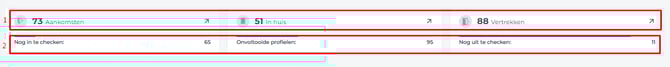 - Totaal nog te verwachten voor die dag - De 'In-house Onvoltooide profielen' geven het aantal gastprofielen aan waarvan de details nog moeten worden ingevuld.