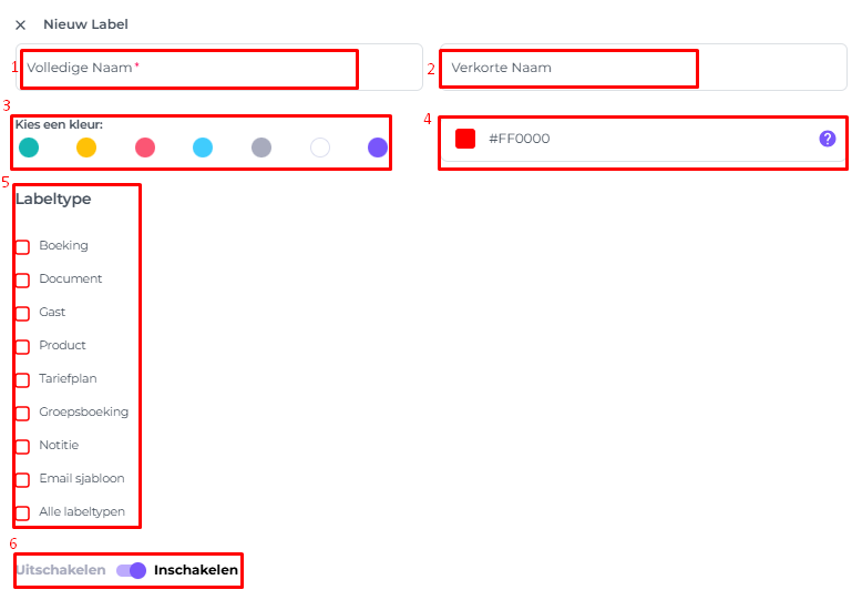 Aan/Uit-schakelaar – Hiermee zet je het label op actief of inactief; handig als je hem nog niet meteen wilt gebruiken.