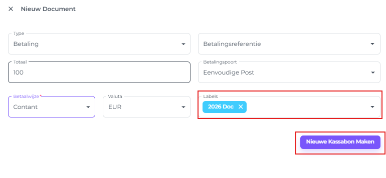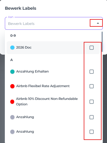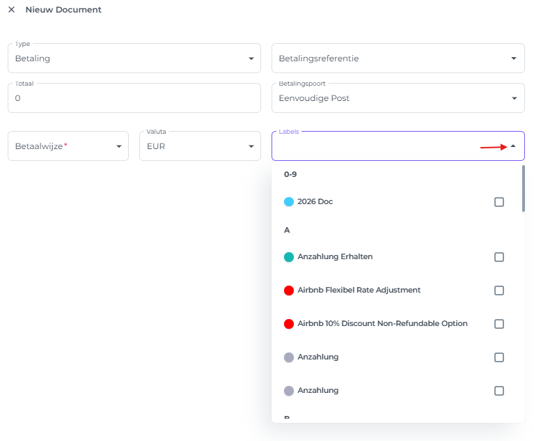 - Selecteer de labels die je aan dit betalingsbewijs wilt koppelen.