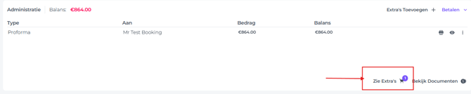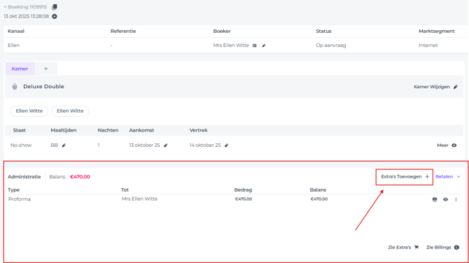 - Ga op de betreffende boekingspagina naar de sectie Administratie en klik op Extra's toevoegen: