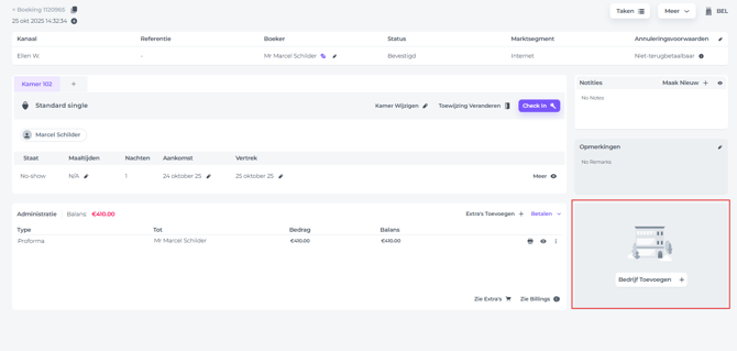 - Voeg indien gewenst een bedrijf toe aan de boeking.