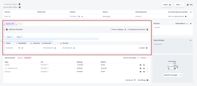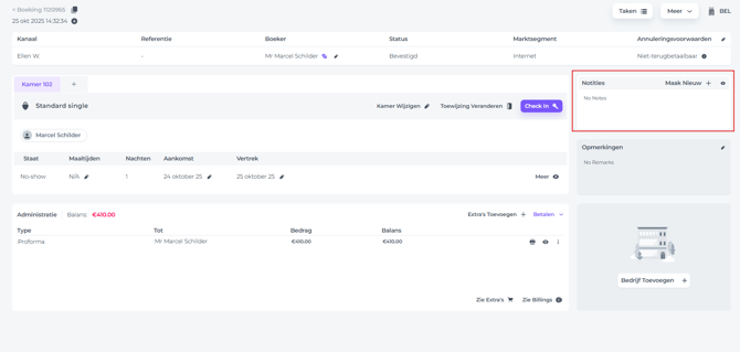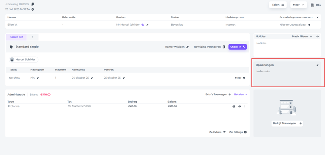 - Opmerkingen vanuit de OTA zijn zichtbaar in de boeking. Het is mogelijk om deze opmerkingen te bewerken, maar dit wordt doorgaans afgeraden.