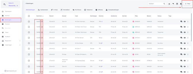 Bekijk ons artikel 'Hoe vind je een boeking?' - Als je op het boekingsnummer klikt, wordt de boekingslijst vervangen door de gedetailleerde boekingspagina.