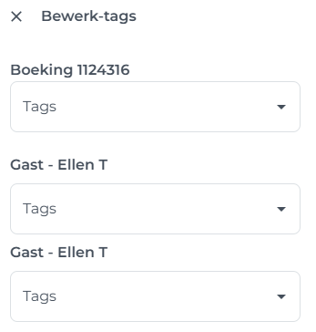 Zie in een oogopslag wanneer de reservering in het systeem is geplaatst. Voeg tags toe door op het kruisje