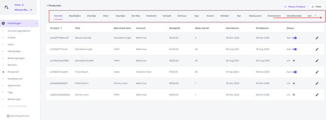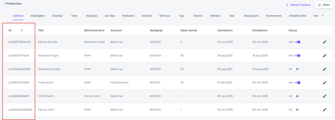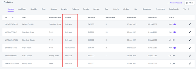- Accountnaam: Als jouw account meerdere hotels beheert, kan je een specifiek hotel selecteren om binnen de inventaris naar het product te zoeken: