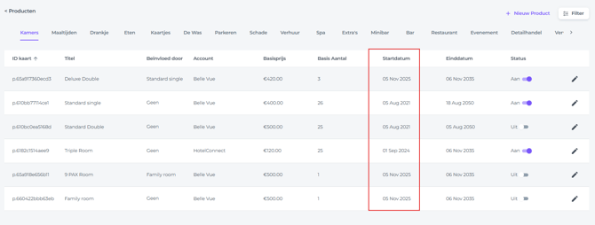 - Startdatum: Vanaf welke datum het product verkoopbaar wordt:
