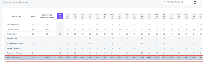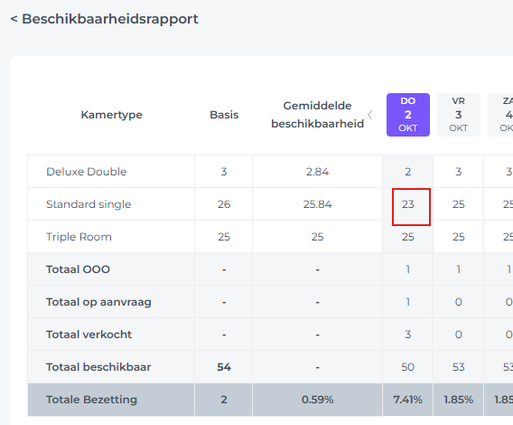 Houd er rekening mee dat de cijfers in dit rapport het daadwerkelijke aantal beschikbare kamers per dag in uw accommodatie weergeven.