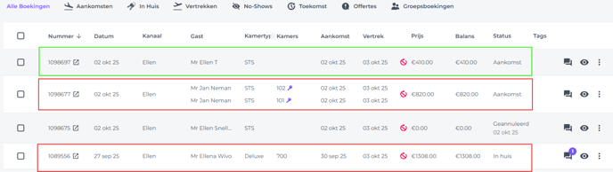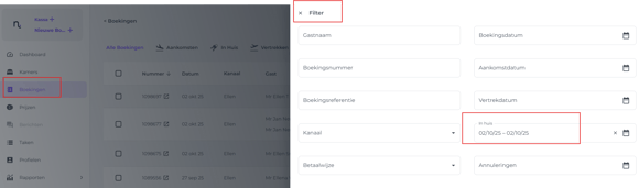 (Dit kan je controleren door te zoeken naar de criteria 'In huis' op de specifieke datum in de Boekingslijst Filter):
