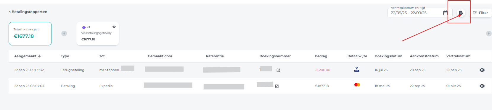 - Om het betaalrapport te exporteren, klikt u op de exportknop: