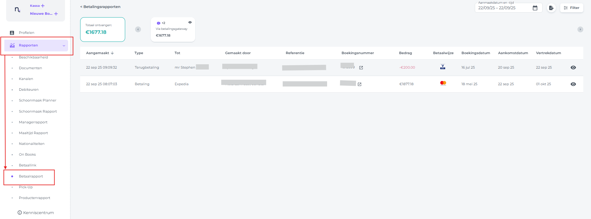 Dit rapport biedt een overzicht van alle betalingen en terugbetalingen – verwerkt via gateway, terminal of handmatig ingevoerd. Alle functies worden in dit artikel uitgelegd. *Gevoelige details in de afbeeldingen zijn om privacyredenen verborgen.