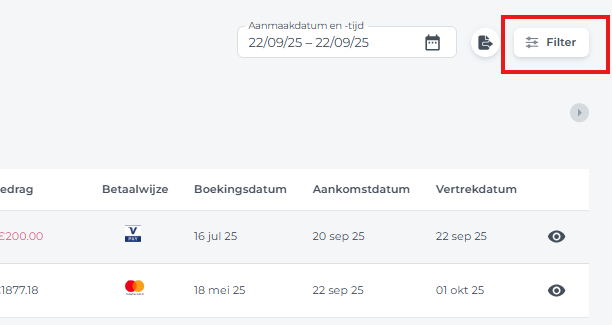 Gebruik de filterknop (rechtsboven) om je resultaten te verfijnen op datum, gebruiker of andere criteria.