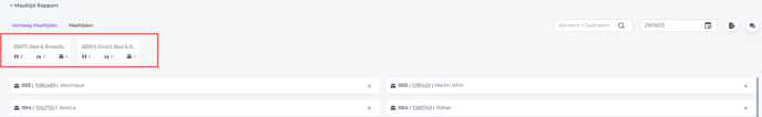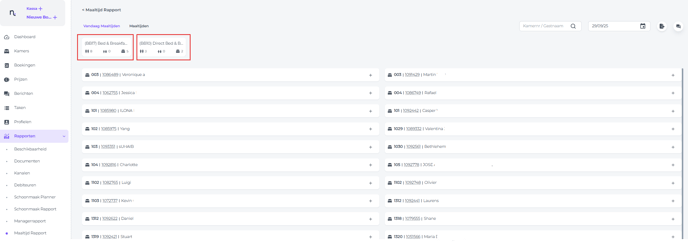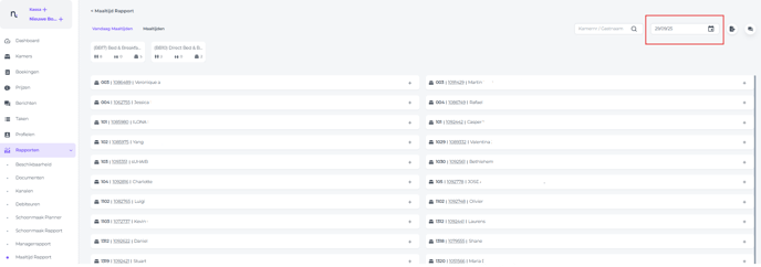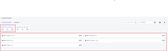 In eerste instantie worden in de lijst alle reserveringen weergegeven die op de huidige datum aankomen, vertrekken of blijven zonder maaltijden: