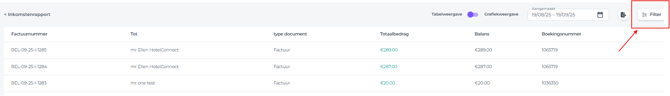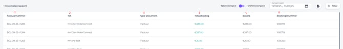 - Brontype - Filter op alleen boekingen, alleen POS (kassafacturen die niet aan een boeking zijn gekoppeld) of beide.