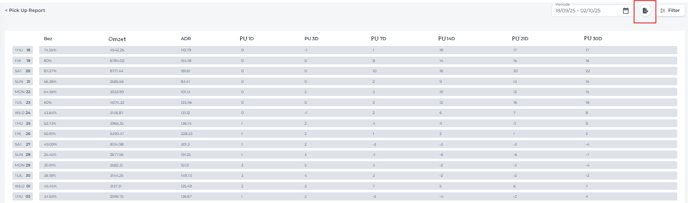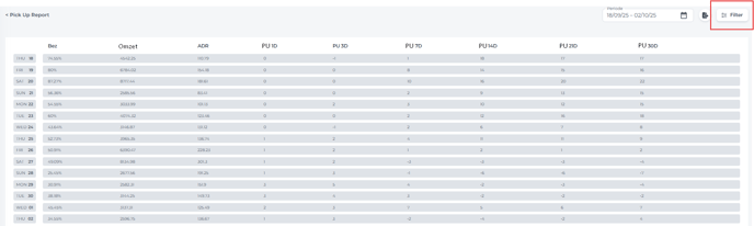 - PU 30D - Geeft de netto verandering in reserveringen voor die datum weer ten opzichte van dertig dagen daarvoor, rekening houdend met alle nieuwe boekingen en annuleringen die in die periode zijn geregistreerd.