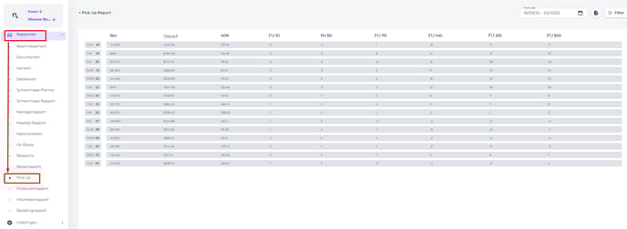 Het Pick Up rapport is te vinden in het hoofdmenu onder Rapporten: