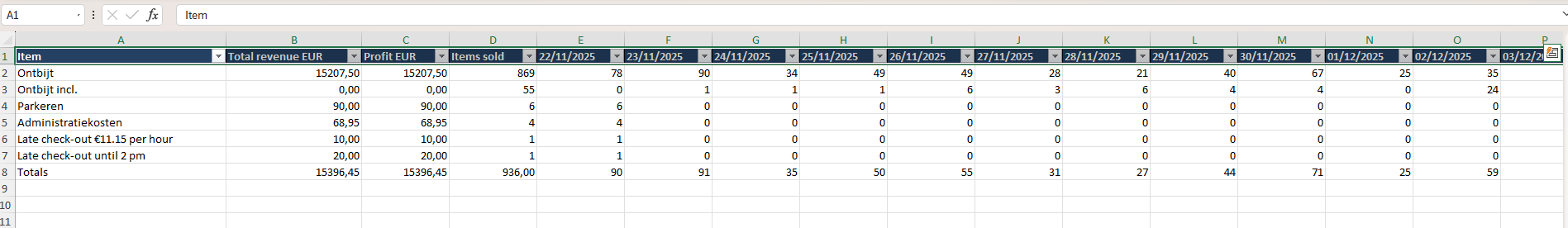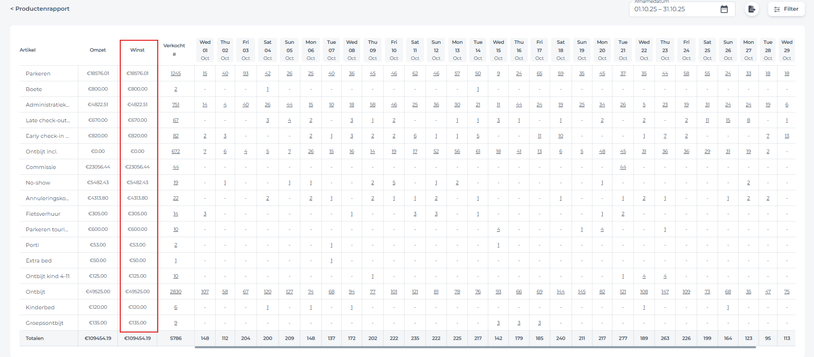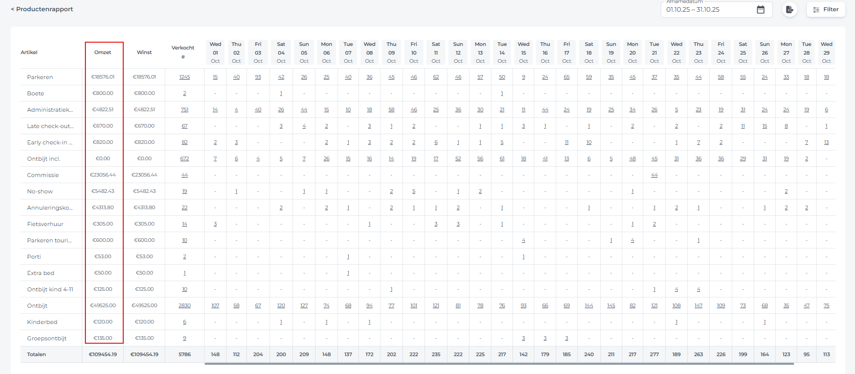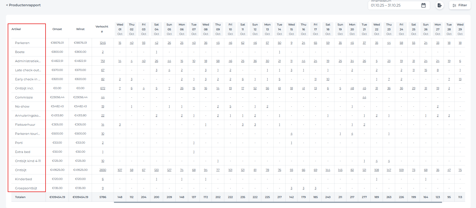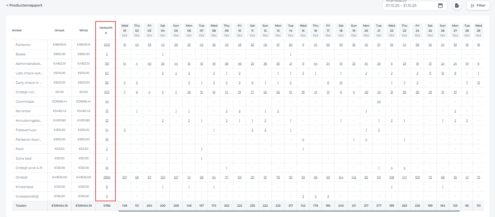• In het overzicht zie je ook het aantal verkochte artikelen per dag