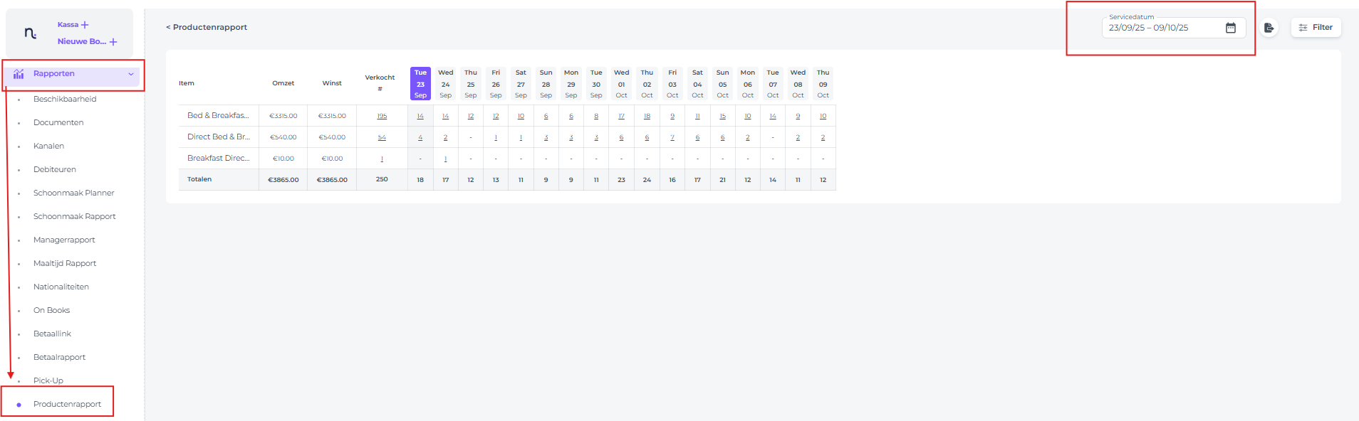 - Kies het datumbereik waarvoor je de verkochte artikelen wilt bekijken: