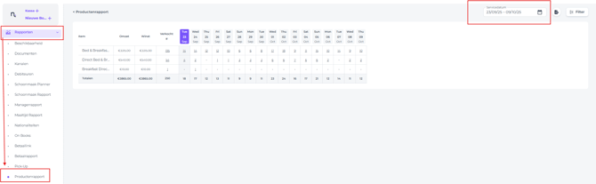 • Kies het datumbereik waarvoor je de verkochte artikelen wilt bekijken: