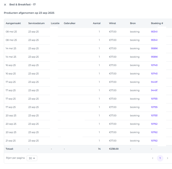 - Bron - Is het product toegevoegd aan een boeking of verkocht via de kassafunctie aan een voorbijganger zonder boeking?