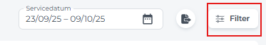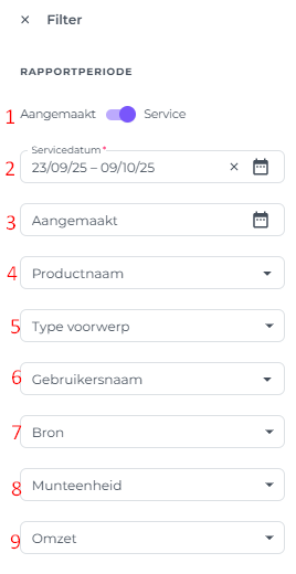 - Aangemaakt datum - Selecteer het bereik van de aanmaakdatum binnen het eerder ingestelde bereik van de servicedatum.