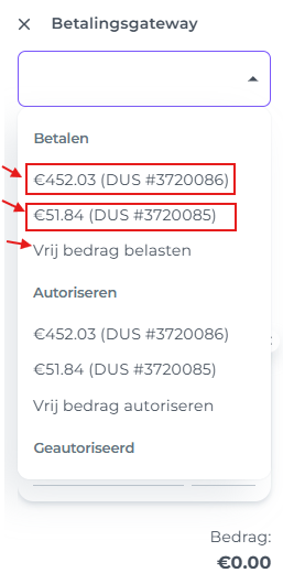 Dit betreft een handmatige betaling, waarbij geen gebruik wordt gemaakt van de betalingspoort.