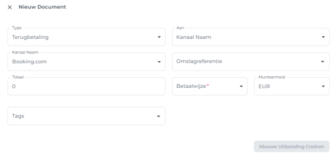 - Als 'Document' is gekozen, kan je het bedrag dat de gast moet betalen eventueel ook nog wijzigen.