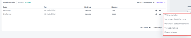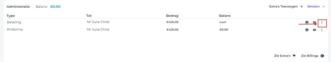 - Klik op de Meer acties knop (3 puntjes) achter de betaling: