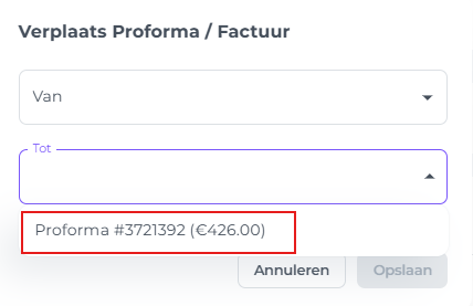- Kies het juiste document (proforma of factuur) uit de lijst: