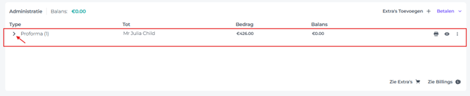 - Controleer of er een Proforma is aangemaakt voor de boeking.