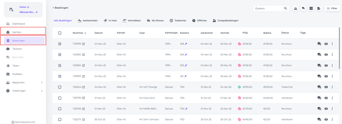 Open de boekingspagina nadat je eerst de betreffende boeking hebt gevonden. Dit kan via de Boekingslijst of de Kamerskalender: