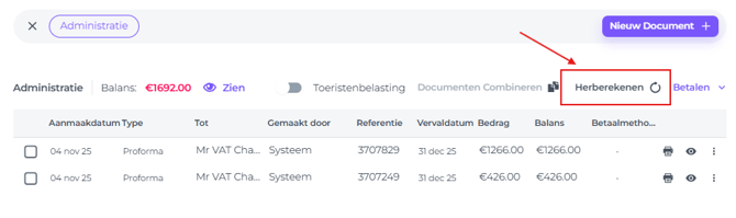 Als de btw niet correct wordt weergegeven, klik dan op de knop 'Herberekenen' om de BTW in het document automatisch bij te werken en te corrigeren: