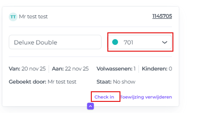 - Als de toewijzing is gedaan voor een boeking met aankomst, kun je, indien gewenst, hier ook meteen inchecken: