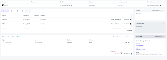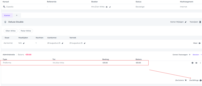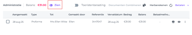 - Ga in de reservering (op de boekingspagina) naar 'Zie Billings'/Bekijk Documenten: