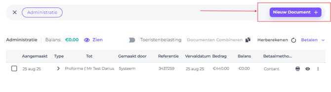 - Er verschijnt een pop-upscherm. Klik op 'Nieuw Document' om een Proforma te maken: