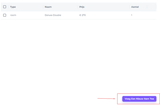 - Om een nieuw artikel aan de lijst toe te voegen, om een proforma voor het betreffende item te maken, klik je op 'Voeg een Nieuw Artikel (item) Toe':