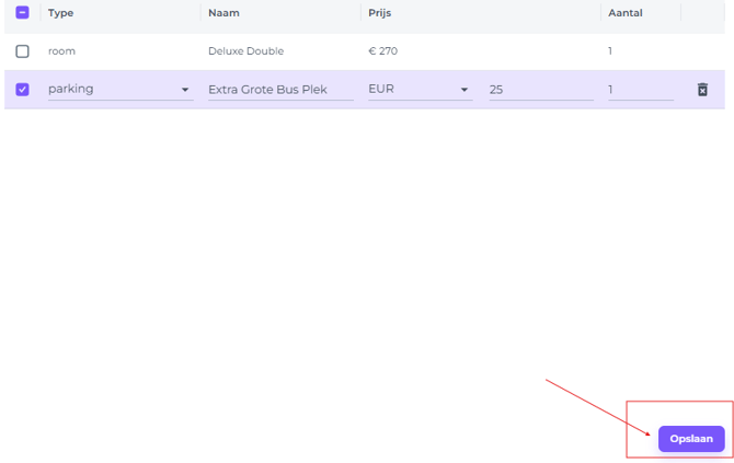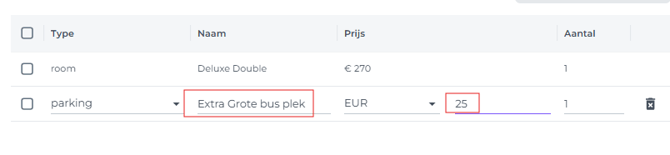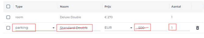 Zeg dat je Parkeren kiest in Type - verander daarna de Naam, bepaal het van toepassing zijnde Prijs en verander Aantal als het meer dan 1 is: