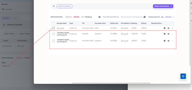 Proforma's worden aangemaakt zodra de boeking wordt gecreëerd, wanneer je een verblijf verlengt of een extra boeking maakt, etc. Soms moet je echter handmatig een proforma aanmaken, dit artikel legt uit hoe.