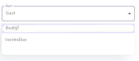 - Aan - Om te bepalen wie de betaler is, kies je Gast, Bedrijf* (als er een bedrijf aan de boeking is gekoppeld) of Verstrekker* (de OTA - Online Travel Agent waar de gast heeft geboekt) .
