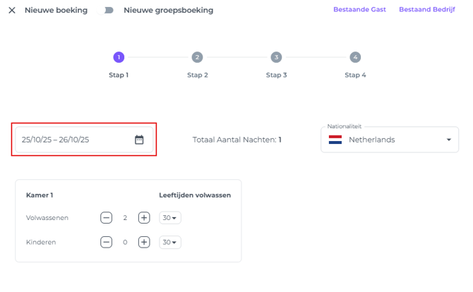 - Selecteer de verblijfsdata in het veld Datumbereik: