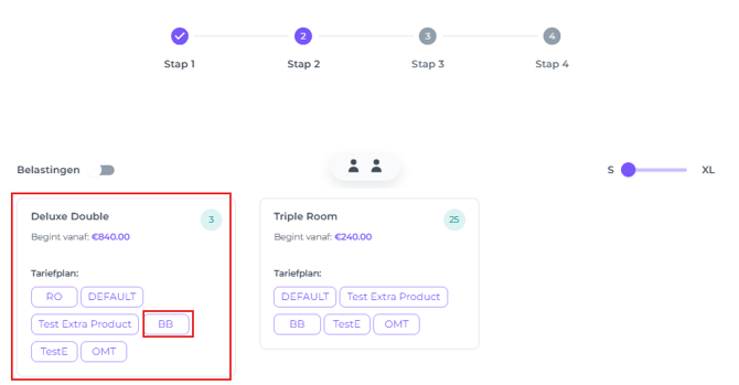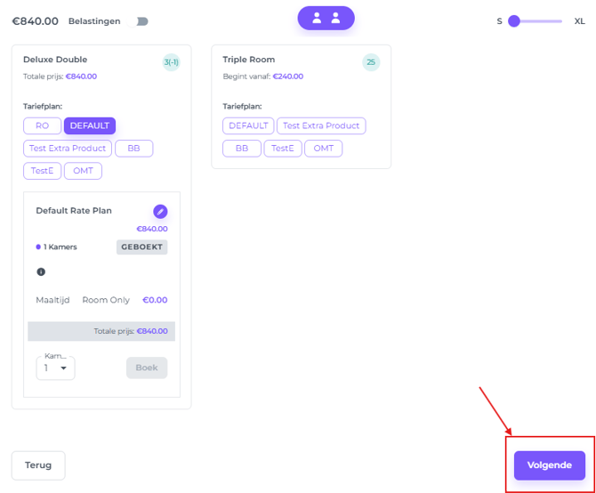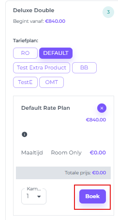- Selecteer het kamertype door het tariefplan in dat kamertype te selecteren: