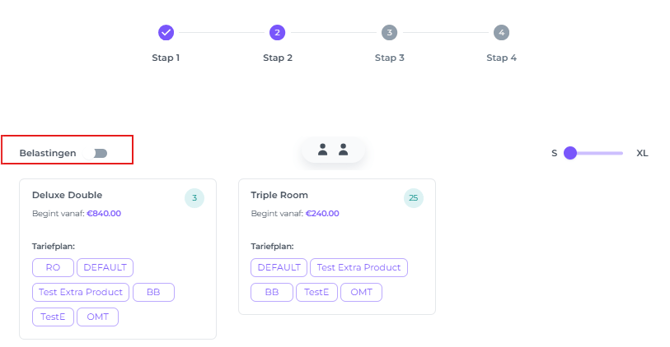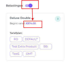 Om het totaal bedrag inclusief belastingen, zoals toeristenbelasting, te bekijken, schakel je eenvoudig de schakelaar 'Belastingen' in: