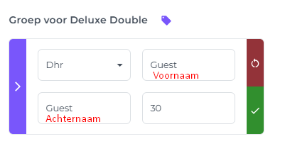 - Om de verblijvende gasten te identificeren, klik je op het pen-icoon in de Groep voor ... (kamertype):