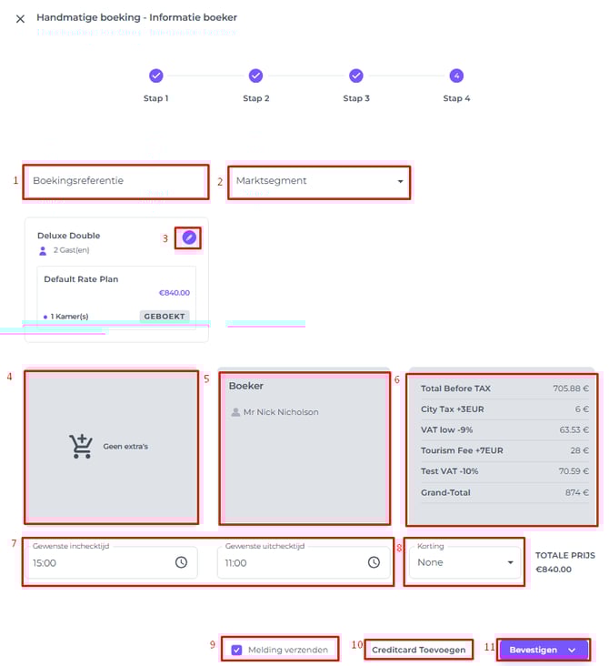 - Marktsegment - Categoriseer de boeking door indien gewenst een segment toe te voegen. Lees het artikel 'Segmenten aanmaken en beheren'.