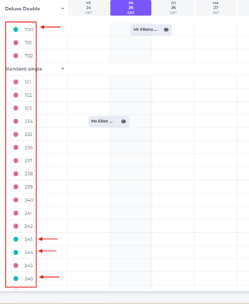 - Kies het kamernummer waarvoor je een reservering wilt maken. (Kies een kamer die klaar is om te betrekken (schoon) als je een walk-in gast meteen wilt inchecken.):
