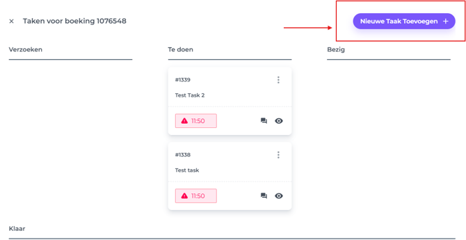 Klik op de Taken knop in de rechterbovenhoek van een boeking: